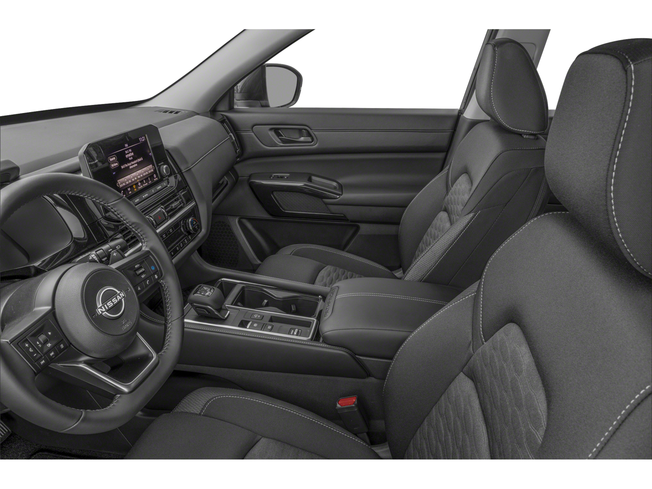 Inside, the Pathfinder SV offers a spacious and well-appointed cabin, with seating for up to eight passengers. Heated front seats, a power driver's seat, and a leather-wrapped steering wheel provide a premium feel, while the NissanConnect infotainment system with Apple CarPlay and Android Auto integration keeps you connected on the go.