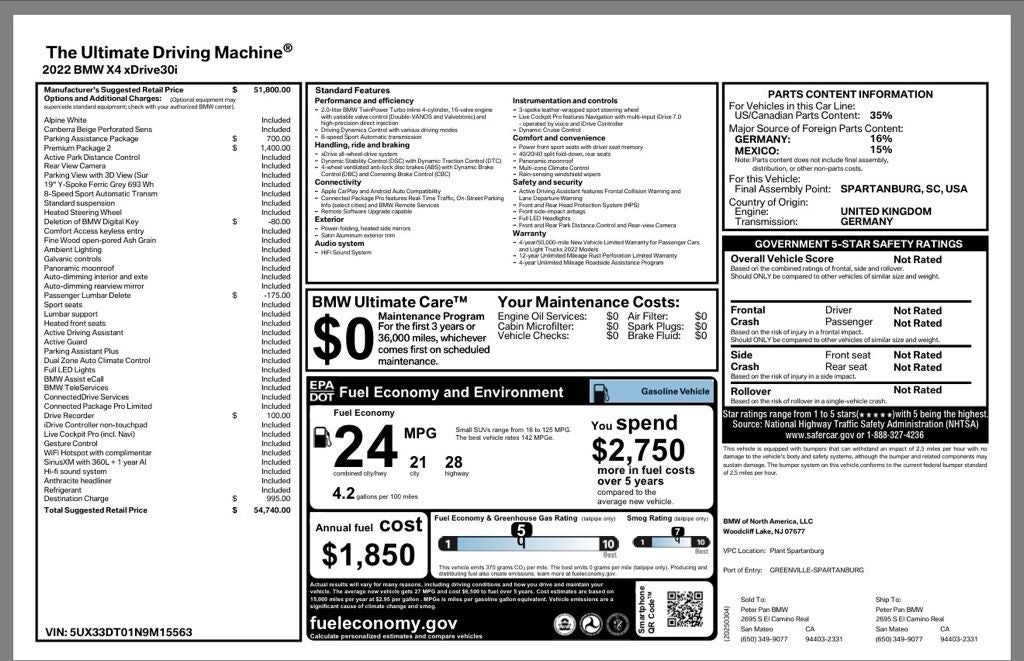 Under the hood, the 2.0L I4 TwinPower Turbo engine delivers an exhilarating blend of power and efficiency, with an impressive 8-speed automatic transmission and standard all-wheel drive for confident handling in any conditions. With an EPA-estimated 21 mpg in the city and 28 mpg on the highway, this BMW delivers the performance you crave without sacrificing fuel economy.